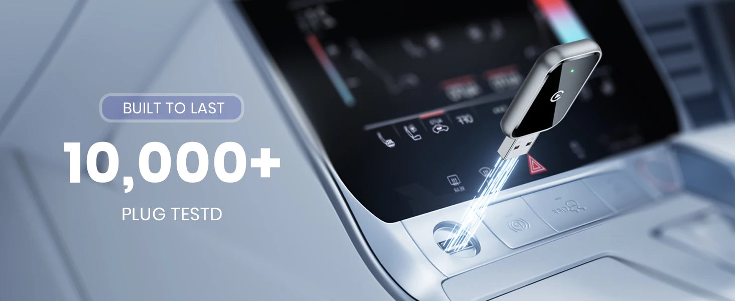 3、🚚【Practical, Durable, Safe】: Designed based on extensive user feedback, the metal edges significantly improve heat dissipation, preventing overheating even with prolonged use, thus protecting your car's USB port. The car play adapter, tested over 10,000 insertions, meets 100% of USB standards, ensuring no wobble and long-lasting durability. With a 50% reduction in size, this car play wireless adapter fits perfectly in narrow car slots. Includes USB-A and Type-C extension cables for all usage scenarios.