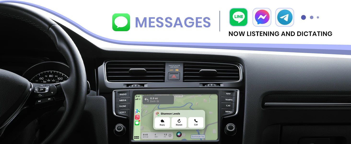 1、🚙【Lightning-Fast Connectivity】: Our wireless apple carplay adapter equipped with the latest 5.8 GHz WiFi, Bluetooth 5.3, and a next-gen chip. Complete the first connection in 10s and auto-connect in 3s with zero daily usage delay. Experience transmission speeds 3 times faster than other adapters. Enjoy smoother usage that enhances every safe drive. Navigate, play music, take calls, and handle messages easily through Siri, touchscreen, buttons, or knobs, making focused driving truly achievable.