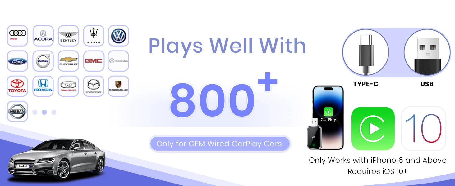 4、【Effortless Wireless CarPlay Experience】: If your car supports wired CarPlay, our adapter is your best choice for experiencing wireless CarPlay. Enjoy all the apps and controls you use with wired CarPlay, now seamlessly connected through our wireless signal. No need to change your habits—just enjoy a cleaner, cable-free car interior. Our adapter makes the transition to wireless car play effortless and clutter-free.