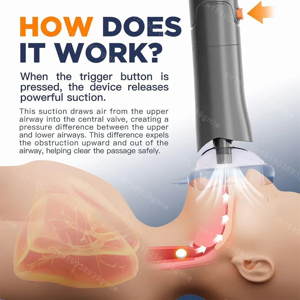 Appareil portable de premiers secours anti-étouffement MERALL, conçu pour les adultes et enfants. Simple d’utilisation avec un seul bouton, il permet une intervention rapide en cas d’urgence, y compris l’auto-secours. La succion continue d’environ 33 kPa aide à libérer efficacement les voies respiratoires tout en réduisant les risques de blessures au visage et au cou.